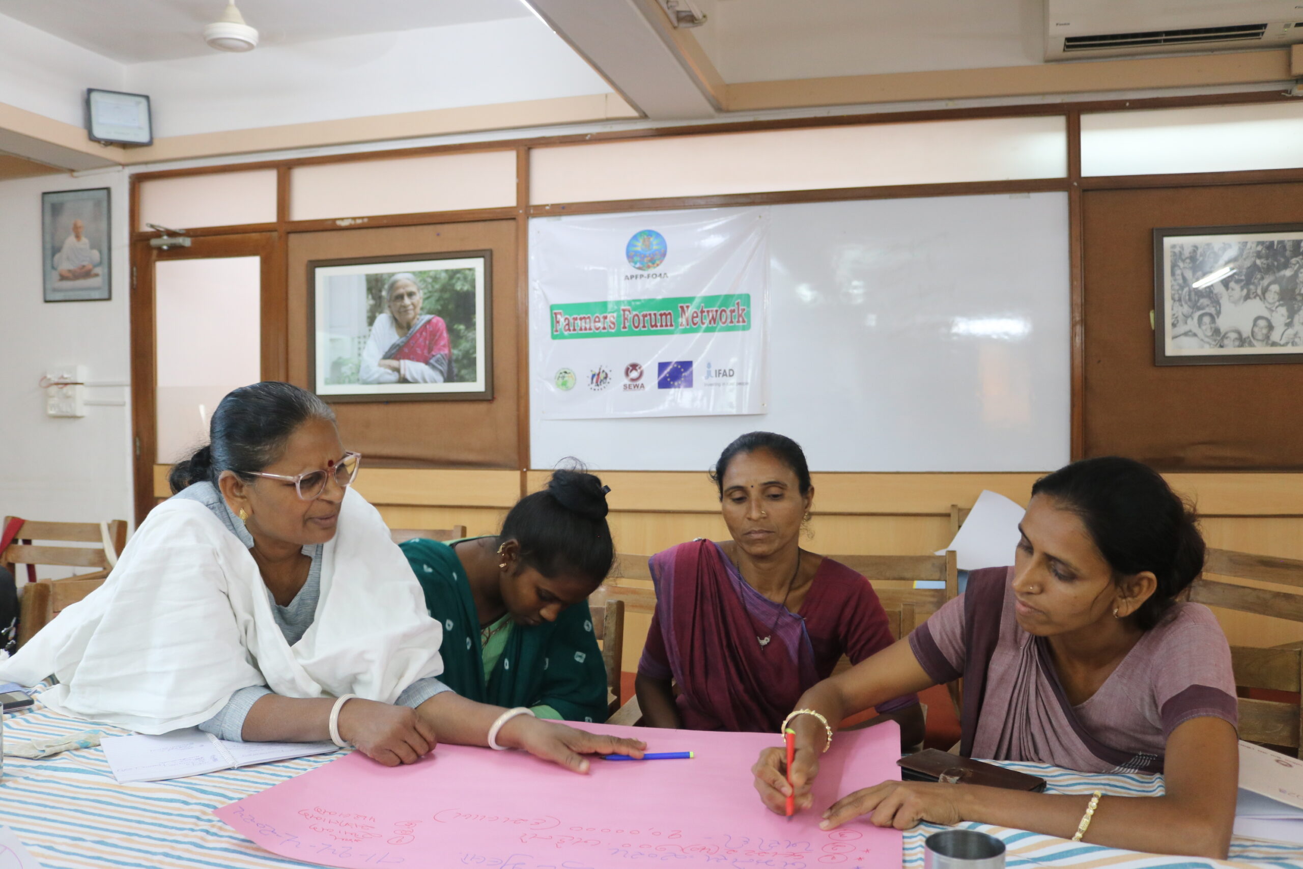 Women leaders from various groups and clusters under the APFP-FO4A program, implemented by the Self Employed Women’s Association-SEWA, gathered on 15 May 2025 at the SEWA Gram Mahila Haat in Gujarat, India, for the Transition Planning Workshop. The activity was also attended by representatives from the program’s Regional Implementing Agency, along with SEWA leaders and coordinators. Click here to view more photos
