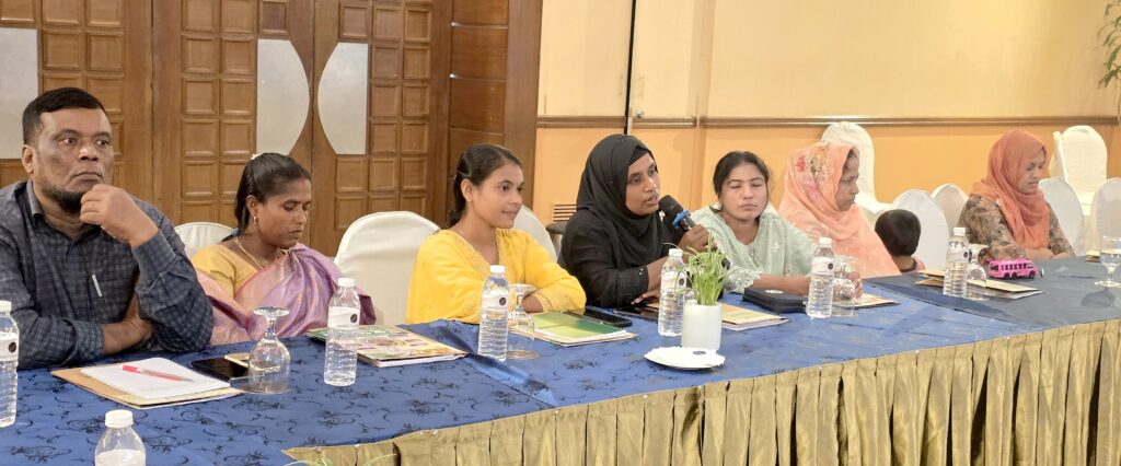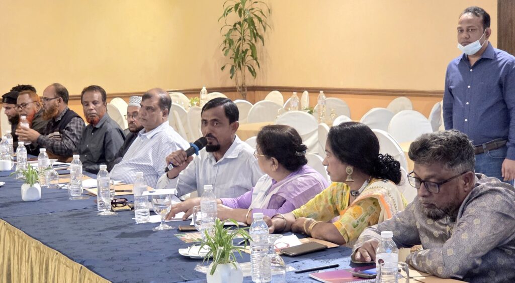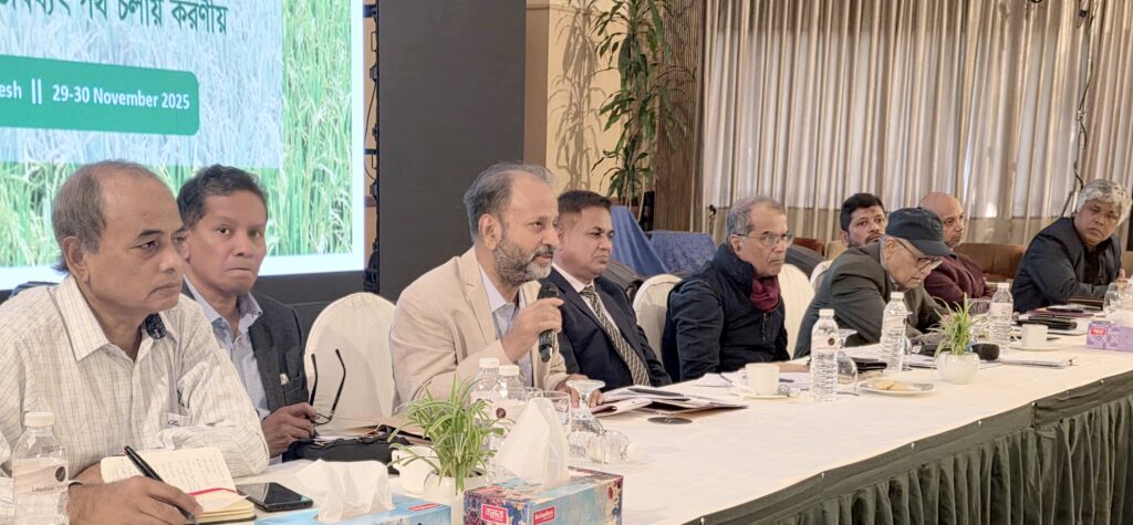 Ahmed Borhan, Director, Center for Social Research, drew attention to the demographic realities of rural villages, where 20-25% of residents are elderly people. He also recommended to conduct research and campaigns to ensure just pricing for agricultural products. Alauddin Sikder, President, Goiata Cooperative (GKUSSL), highlighted the role of cooperatives in indigenous seed production, monitoring fertilizer and pesticide pricing, and coordinating pricing for essential commodities such as salt and potatoes. Mahfuza Akter, President, Youth Committee, GKUSSL, called for the expansion of saline-tolerant seed varieties, particularly in coastal areas, as a key climate adaptation measure.