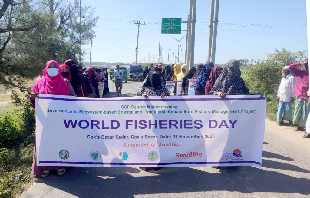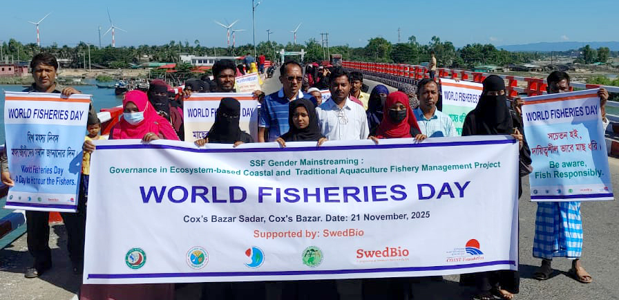 These were among the key messages raised during a rally and awareness-raising event organized by the COAST Foundation in Cox’s Bazar on November 21, in observance of International Fisheries Day 2025. Supported by the APFP-FO4A program, this year’s commemoration centered on the theme: “Sustainable Fisheries for Prosperity — Protect Aquatic Ecosystems and Conserve Fisheries Resources.”