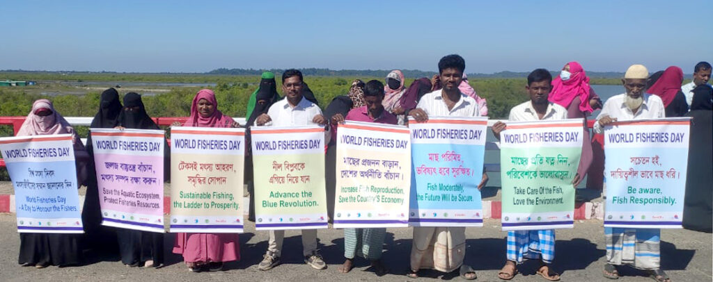 The rally was inaugurated by Md. Rashed Ahmed, Senior Fisheries Officer of Cox’s Bazar, who attended as Chief Guest. Also present as Special Guests were Md. Gias Uddin, General Secretary of Khurushkul Fishermen’s Samity, and Roksana Akter Rupa, UP Member of Pokkhali Union Parishad. Leaders of the District Networking Committee also joined the event.